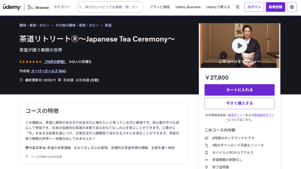 国際的な活動:フランス、ハワイ、中国、香港、オーストラリア、ニュージーランドなど、世界各国の賓客へ日本の精神性を伝道。Udemyでのオンライン講座「茶道リトリート®︎」はベストセラーとなり、世界中に受講生を持つ。