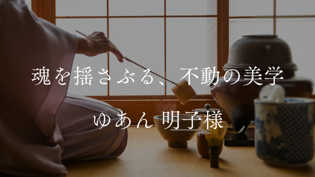 初めてお会いした瞬間に、ゆあん様が放つ独特の感性と、物事の本質を捉える眼差しに、私自身も強く引き込まれました。お茶室という空間で、言葉を超えて私の内側にある「信念」を魂で感じ取ってくださったこと。そして、人生の経験を重ねてこられたゆあん... -