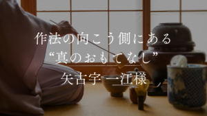 初めてお会いした瞬間に、ゆあん様が放つ独特の感性と、物事の本質を捉える眼差しに、私自身も強く引き込まれました。お茶室という空間で、言葉を超えて私の内側にある「信念」を魂で感じ取ってくださったこと。そして、人生の経験を重ねてこられたゆあん様に、このような身に余るお言葉をいただけたことに、私自身も背筋が伸びる思いと深い感謝を感じております。